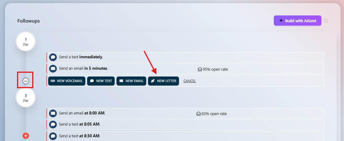 You can include a handwritten letter as an automated step inside any Agent Legend drip campaign. When a contact reaches that step in the sequence, the letter is triggered and sent automatically — no manual action needed.